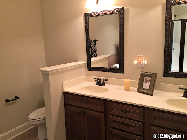 This master bathroom is amazing. Gives me everything we need. It doesn’t give a full water closet but is that really a necessity? Apparently not seeing as how I don’t have one now. But I do like that it has a partition.