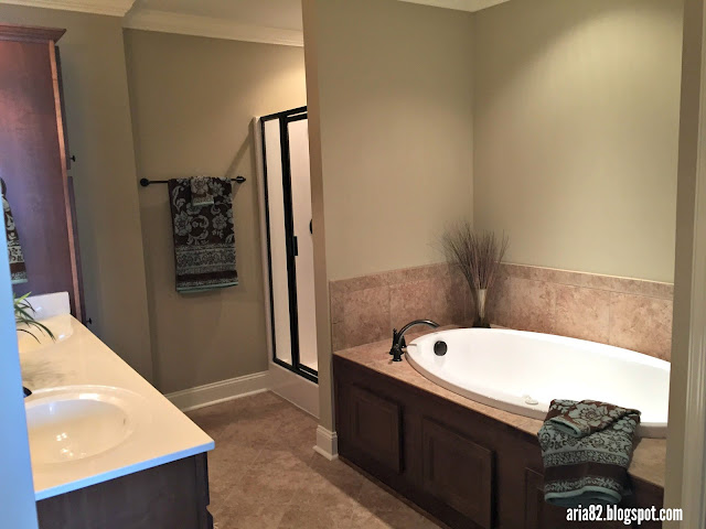 I loved this house but I only took these pics of the master bathroom. I liked that the sinks are separated and the master bathroom is huge. {Don’t mind my children who made a few cameos}