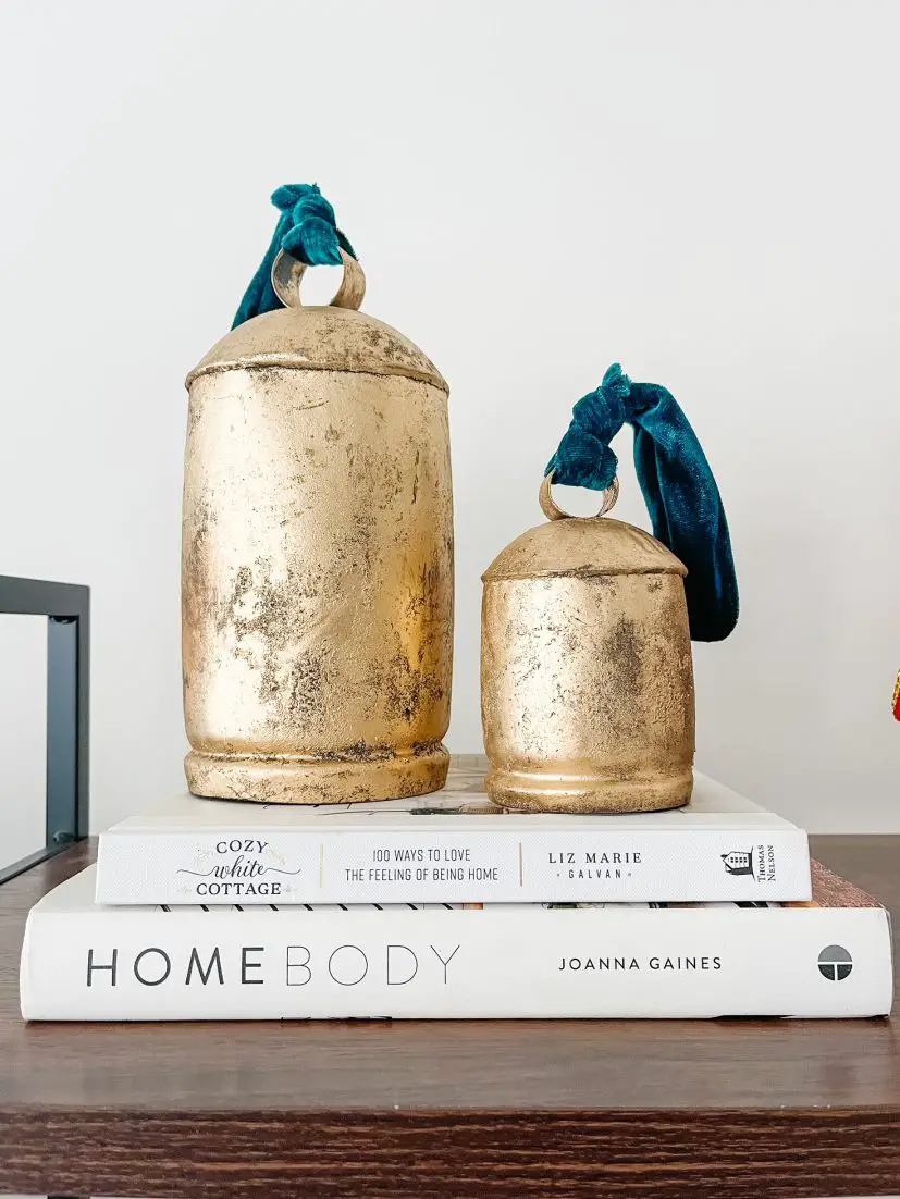 rustic gold bells • cozy white cottage book • homebody book